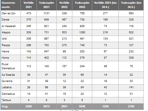  Spiegel, Der (29.8.2016): Die Fakten zum Krieg in Syrien, https://www.spiegel.de/politik/ausland/krieg-in-syrien-alle-wichtigen-fakten-erklaert-endlich-verstaendlich-a-1057039.html#sponfakt=1 , Zugriff 23.6.2023