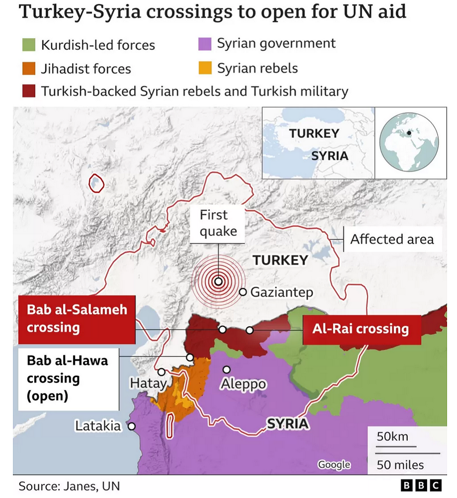 Es steht dem Beschwerdeführer offen, abermals über die Türkei auf dem Landweg über einen der von der HTS kontrollierten Grenzübergänge über durchwegs unter der Kontrolle der HTS stehendes Gebiet in die Provinz Idlib zu gelangen, ohne jemals in Kontakt mit Kräften der syrischen Regierung treten zu müssen (vgl. Punkt 1.3.1. als auch die Website https://syria.liveuamap.com/ ). Auch die Vereinten Nationen nützen diesen Grenzübergang, da über Bab al-Hawa die einzige Route verläuft, über die UN-Hilfen an die syrische Bevölkerung geliefert werden können, ohne von syrischen Regierungstruppen kontrollierte Gebiete passieren zu müssen (vgl. Zeit online, 14.07.2023, Syrien öffnet Grenzübergang zu Rebellengebiet für internationale Hilfe, abrufbar unter https://www.zeit.de/politik/ausland/2023-07/bab-al-hawa-syrien-rebellengebiet-un-tuerkei-hilfe , Zugriff am 01.02.2024). Das Gouvernement Idlib, aus dem der Beschwerdeführer stammt, liegt direkt an der Grenze zur Türkei, so dass ihm eine Einreise möglich ist, ohne dass er durch Gebiete muss, die unter Kontrolle des syrischen Regimes stehen. Auch im aktuellen (unter Punkt II.1.3.7 zitierten) Themenbericht der Staatendokumentation vom Oktober 2023 wird festgehalten, dass der 40 Kilometer von seinem Heimatdorf entfernte Grenzübergang Bab al-Hawa geöffnet und stark frequentiert ist. Auch wenn es vereinzelt zu Übergriffen durch die türkischen Grenzbeamten kommt, ist nicht mit maßgeblicher Wahrscheinlichkeit zu erwarten, dass es dem Beschwerdeführer nicht möglich wäre, die Grenze zum Gouvernement Idlib zu überschreiten. Zwischen dem Grenzübergang Bab al-Hawa und seinem Heimatdorf hat das Regime keine Kontrolle und daher auch keinen Zugriff auf den Beschwerdeführer.