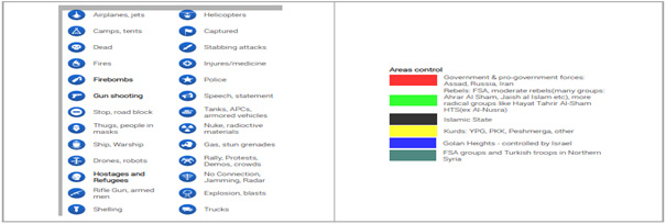 Die folgende Karte zeigt die verschiedenen internationalen Akteure und deren militärische Interessenschwerpunkte in Syrien: