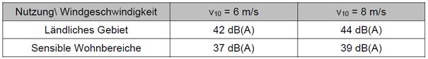 Im Hinblick auf die Erzeugung von Umgebungslärm sowie von Erschütterungen durch WEA liegen keine gesetzlich festgelegten Schwellenwerte vor.