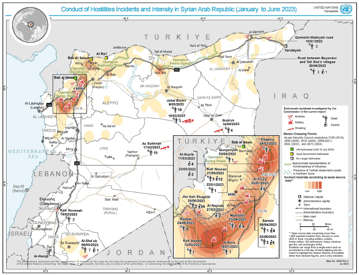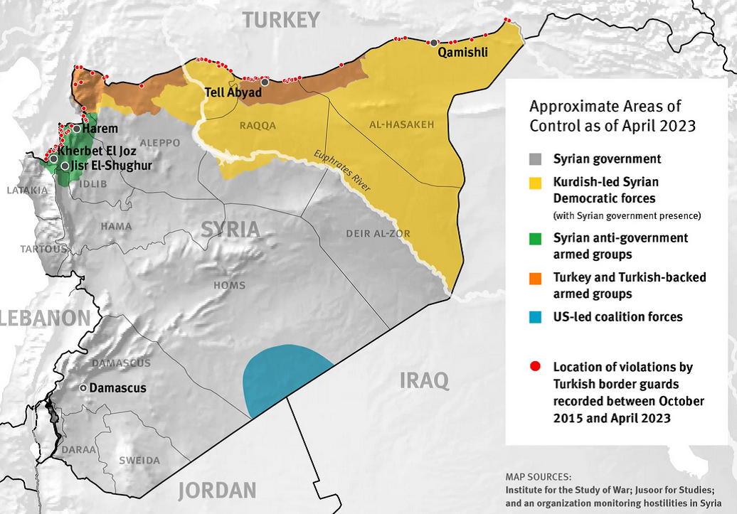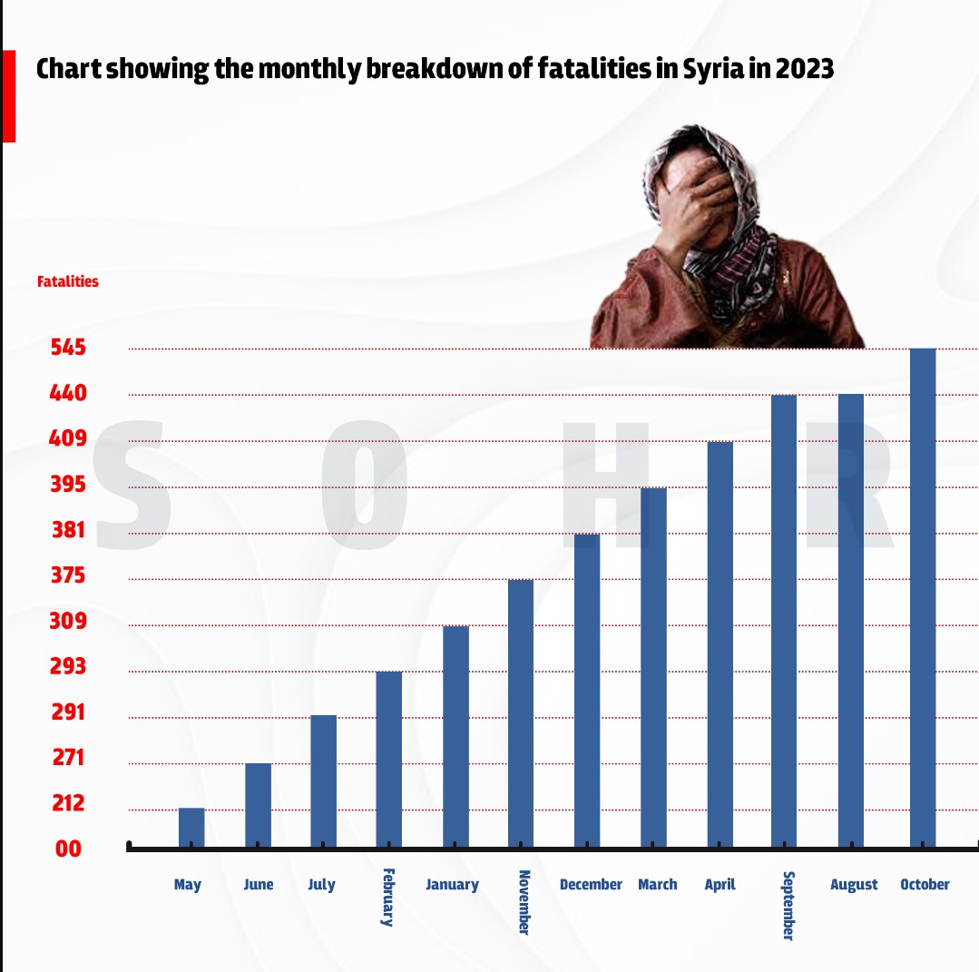 Die Syrische Beobachtungsstelle für Menschenrechte mit Sitz in London (SOHR), verzeichnete für das Jahr 2023 mit 4.361 getöteten Personen die höchste Todesopferzahl in drei Jahren. Darunter zählten sie 1.889 ZivilistInnen, darunter 307 Kinder und 241 Frauen (SOHR 31.12.2023).