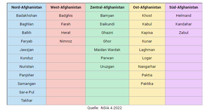Regionen Afghanistans