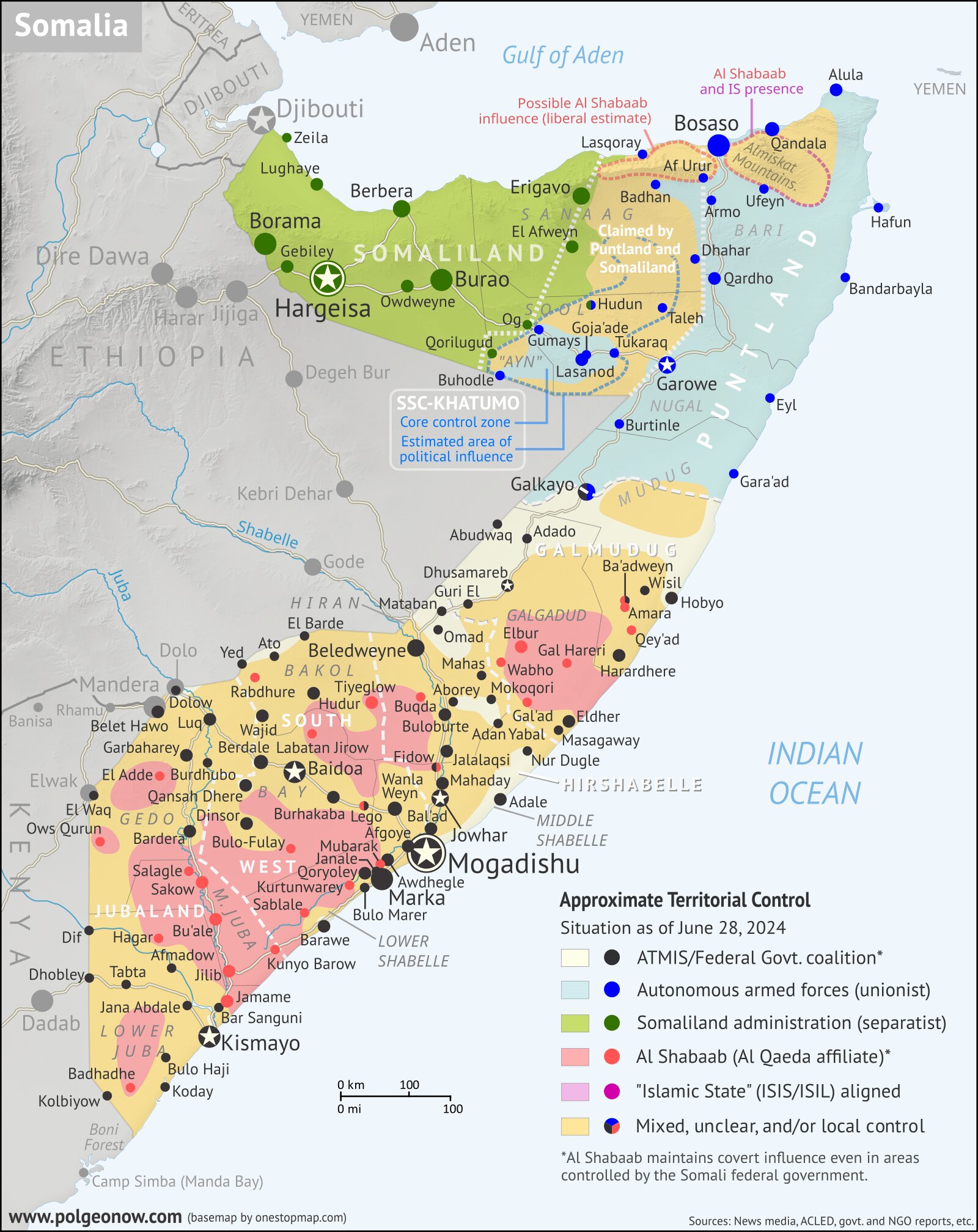  PGN - Political Geography Now (28.6.2024): Preliminary Somalia Control Map – Approximate Territorial Control, per e-Mail [kostenpflichtig, Login erforderlich]