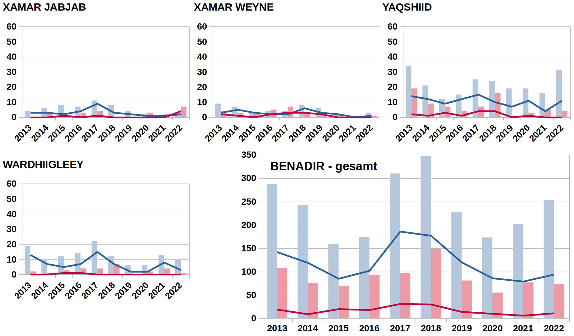 Überlandreisen: Al Shabaab bleibt auch weiterhin die größte Bedrohung hinsichtlich Bewegungsfreiheit entlang von Hauptversorgungsrouten in Süd-/Zentralsomalia. Die Gruppe verwendet entlang dieser Straßen Sprengsätze und legt Hinterhalte. Manchmal placiert al Shabaab Sprengsätze auch deswegen, um dadurch den Verkehr auf Straßen umzulenken, an welchen sie Checkpoints unterhält, wo Gebühren eingehoben werden (UNSC 6.10.2021).