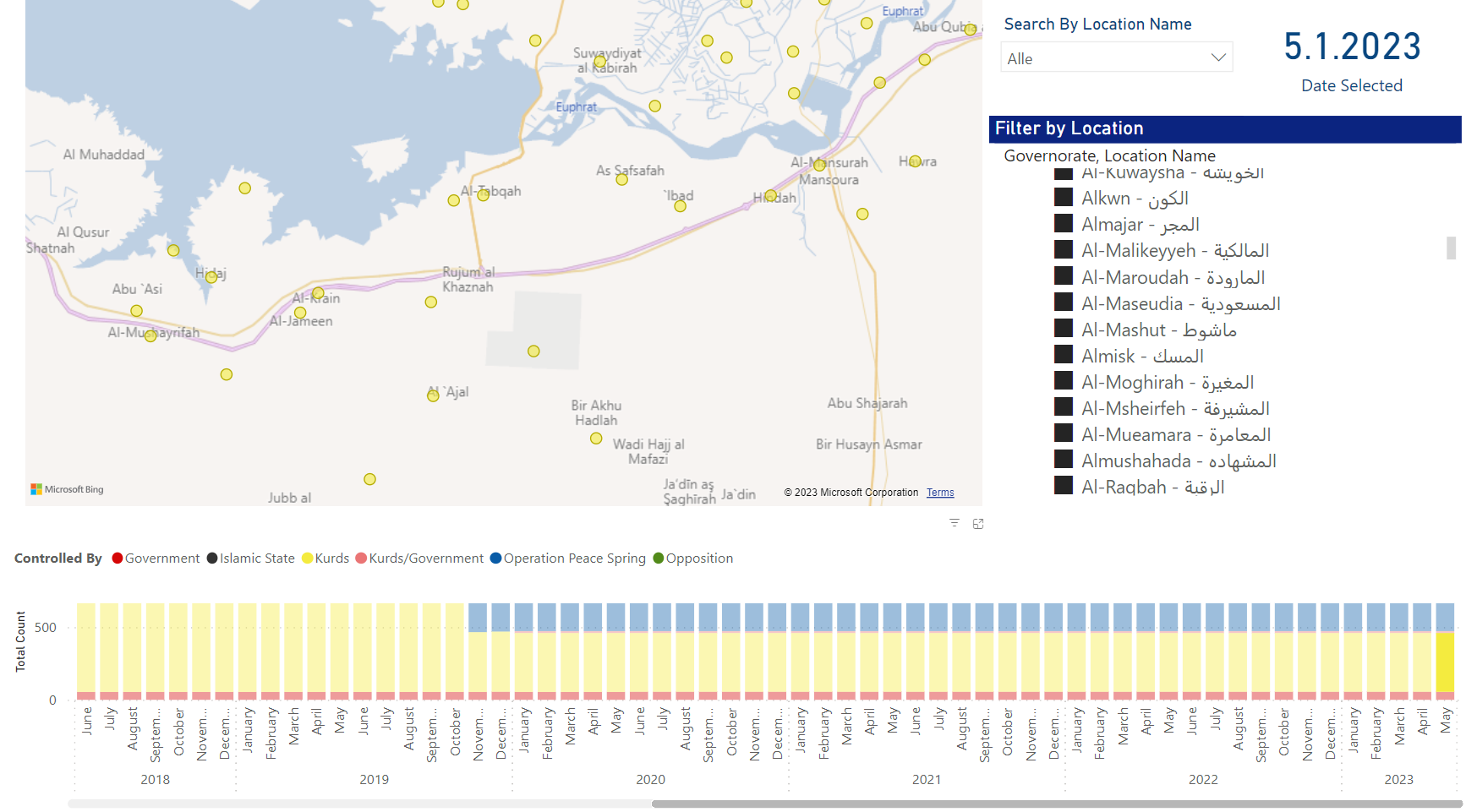 Auch den in der EUAA Country Guidance als verlässliche Quelle zur Kontrollsituation in mehr als 8.000 syrischen Orten herangezogenen Kartendaten des „Syria Conflict Mapping team“ des Carter Center (https://www.cartercenter.org/news/multimedia/map/exploring-historical-control-in-syria.html ), ist klar zu entnehmen, dass sich der Heimatort des Beschwerdeführers al-Tabaqa unter der Kontrolle der kurdischen Streitkräfte befindet (abgerufen am 31.05.2023):
