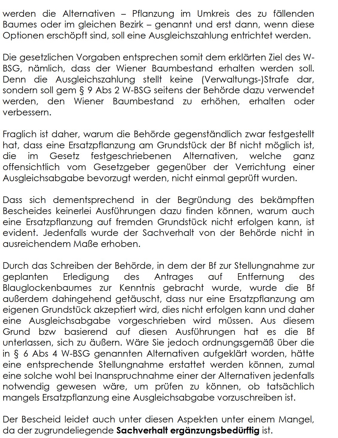 Damit erübrigt sich die Auseinandersetzung mit der Frage, ob es im ... Wr. Gemeindebezirk tatsächlich eine öffentliche Fläche gibt, auf welcher noch eine Ersatzpflanzung vorgenommen werden könnte.