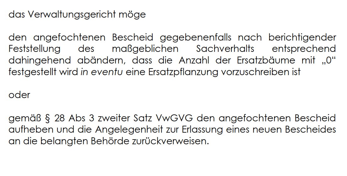 Die Beschwerdeführerin hat mit Schriftsatz vom 7.2.2025 den Antrag auf Vorschreibung einer Ausgleichsabgabe anstelle der Vorschreibung einer Ersatzpflanzung gestellt.