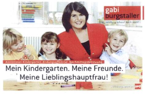 Die Klägerin ist eine selbständige Landesorganisation der Sozialdemokratischen Partei Österreichs mit eigener Rechtspersönlichkeit. Ihr Landesgeschäftsführer wurde beauftragt, alle Aufgaben im Zusammenhang mit dem Salzburger Landtagswahlkampf 2009 wahrzunehmen. Die Klägerin ist Auftraggeberin einer für sie im Vorfeld dieser Wahlen durchgeführten Werbekampagne, in der (als Plakat- und Internetwerbung) ua das nachstehend abgebildete Lichtbild (Beil./A) verwendet wurde.