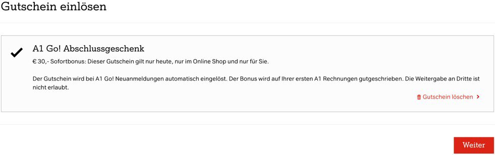 [15] Klickte der Nutzer auf die Anzeige, leitete ihn die Beklagte auf die Website https://shop.a1.at weiter. Dort warb die Beklagte mit einem „A1 Go! Abschlussgeschenk“ im Wert von 30 EUR und „Dieser Gutschein gilt nur heute, nur im Onlineshop und nur für Sie“: