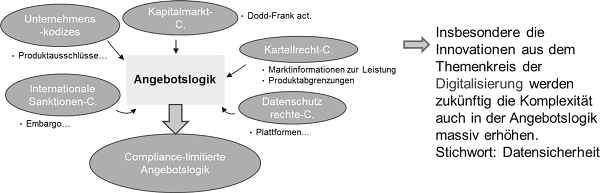 Die rahmengebende Wirkung der Positionierung des Geschäftsmodells auf die Angebotslogik wird auf zweiter Ebene durch Compliance-relevante Themen limitiert.