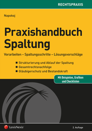 Das Werk enthält eine detaillierte Darstellung der für die Spaltung erforderlichen Vorarbeiten und eine Beschreibung des Spaltungsvorgangs samt der dafür erforderlichen Schritte und Dokumente. Neben praktisch orientierten Vorschlägen und Lösungen von im Rahmen der Spaltung oder auch danach häufig auftretenden Fragen und Problemen wird die Spaltung dogmatisch aufgearbeitet.