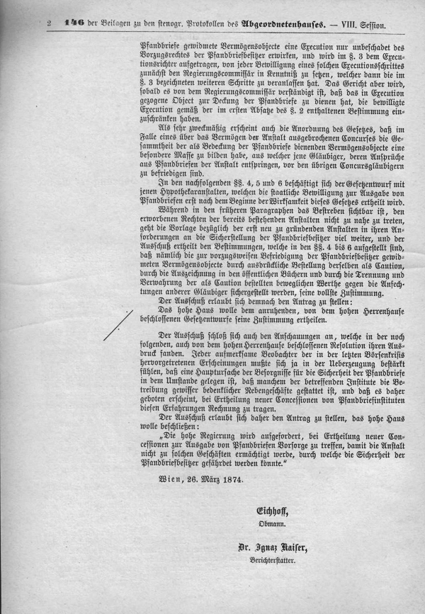 <i>Heindler/Wolfbauer</i> in <i>Heindler/Wolfbauer</i> (Hrsg), PfandBG - Pfandbriefgesetz (2022) Anlage 10: Bericht des Ausschusses über den Gesetzesentwurf, betreffend die Wahrung der Rechte der Besitzer von Pfandbriefen vom 26. 3. 1874, Seite 686 Seite 686