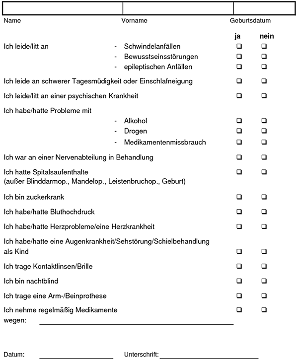 Sehr geehrte(r) Führerscheinwerber(in)!