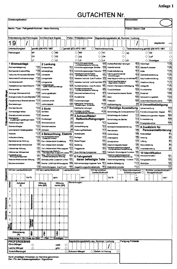 Die Prüfung des Fahrzeuges erfolgte ohne Zerlegungsarbeiten, ausgenommen solche Zerlegungsarbeiten, die für den Zugang zu Prüfanschluss- oder Entnahmepunkten not Seite 1wendig sind. Mängel konnten daher nur bei jenen Prüfpositionen angezeichnet werden, wo diese offensichtlich erkennbar waren. Der beschriebene Zustand bezieht sich auf den Zeitpunkt der Prüfung und beinhaltet keine Prognose über den Zustand des Fahrzeuges bis zum nächsten Begutachtungs(Überprüfungs-)termin.