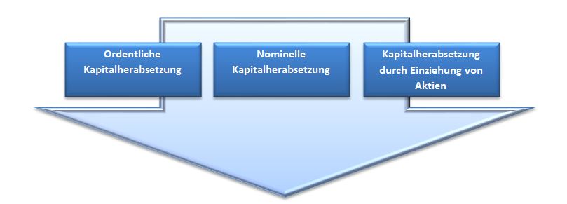 Unter Kapitalherabsetzung versteht man bei der AG die Verminderung des Grundkapitals bzw eine Angleichung der Grundkapitalziffer an das Gesellschaftsvermögen. Sie kann als ordentliche (effektive) Kapitalherabsetzung, als vereinfachte (nominelle) Kapitalherabsetzung oder durch Einziehung von Aktien erfolgen.