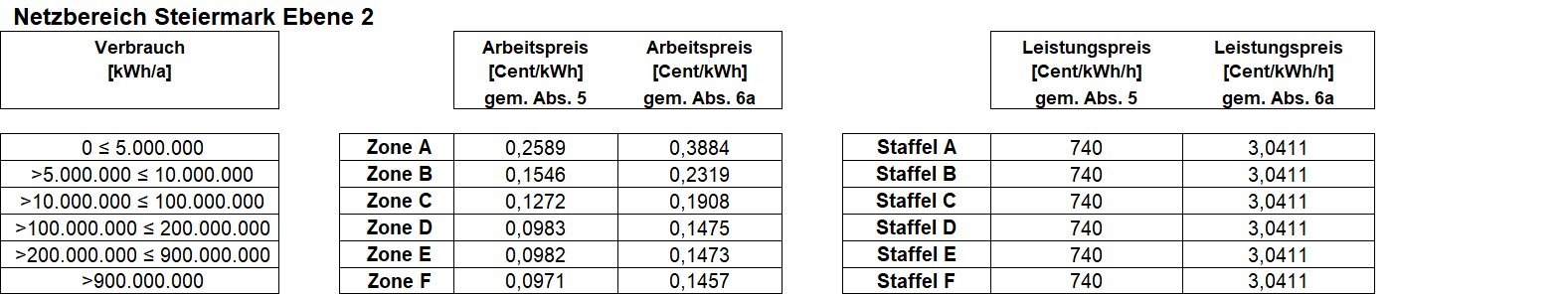 - 1. Netznutzungsentgelt für die Netzebene 2: