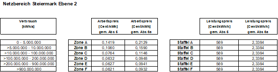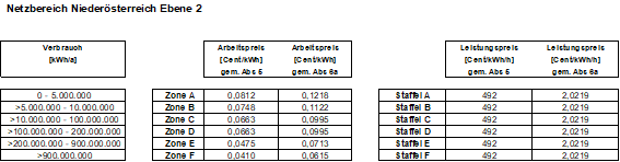- 1. Netznutzungsentgelt für die Netzebene 2: