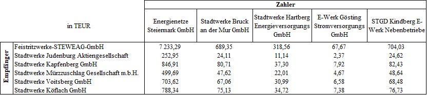 Die Ausgleichszahlungen werden als Nettozahlungen in TEUR, die Jahresbeträge darstellen, festgelegt und sind in pro festgelegtem Zeitraum jeweils gleichen Teilbeträgen monatlich wie folgt zu leisten: