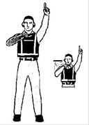 (Der rechte Arm ist vom Ellbogen ab aufwärts gerichtet, der gestreckte Daumen zeigt nach oben.)