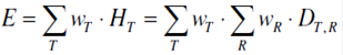 Dabei ist DT,R die über ein Gewebe oder ein Organ T gemittelte Energiedosis durch die Strahlung R und wR der Strahlungs-Wichtungsfaktor.