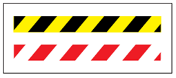 Die Streifen (schwarz/gelb oder rot/weiß) sind in einem Neigungswinkel von etwa 45 Grad anzuordnen und müssen in etwa die gleiche Breite aufweisen.