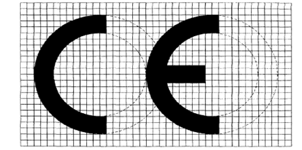 Bei Verkleinerung oder Vergrößerung der CE-Kennzeichnung müssen die sich aus dem oben abgebildeten Raster ergebenden Proportionen eingehalten werden.