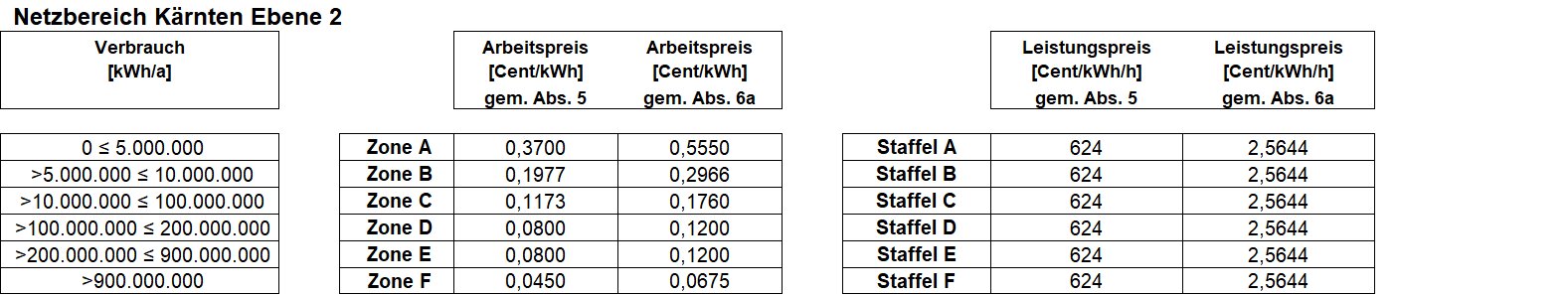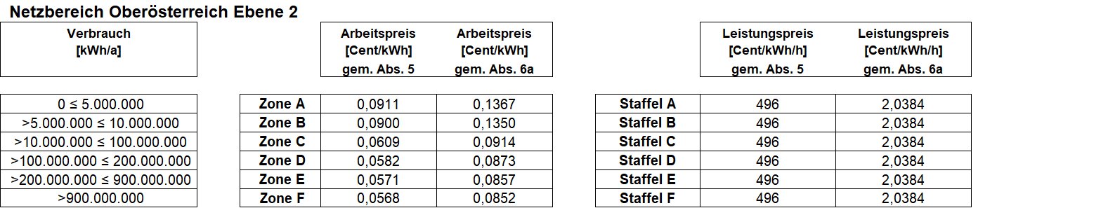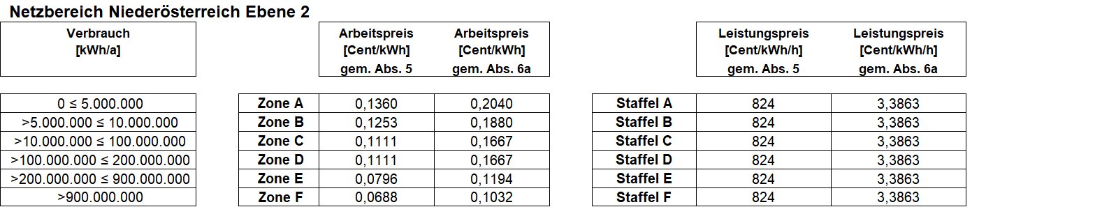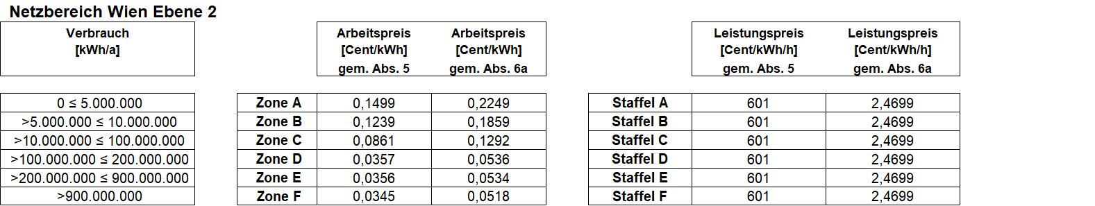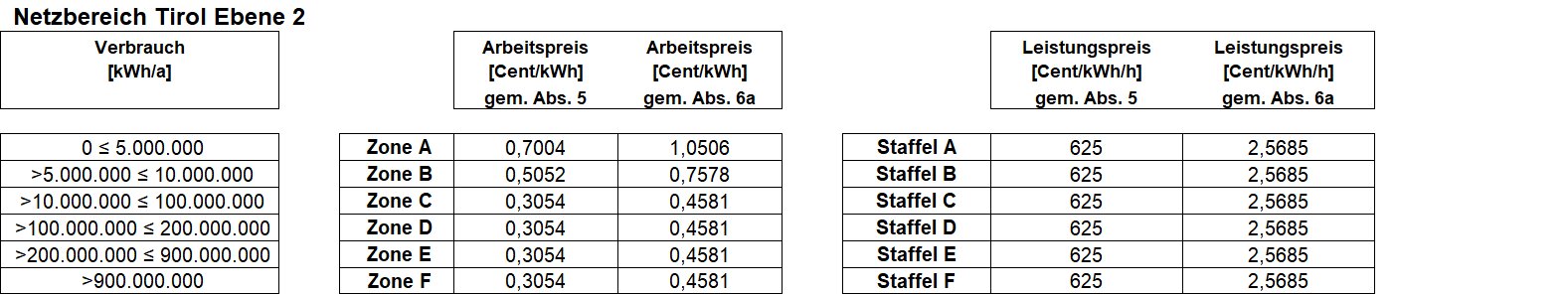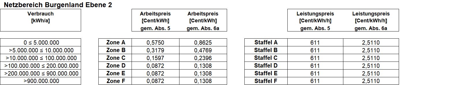1. 1. Netznutzungsentgelt für die Netzebene 2: