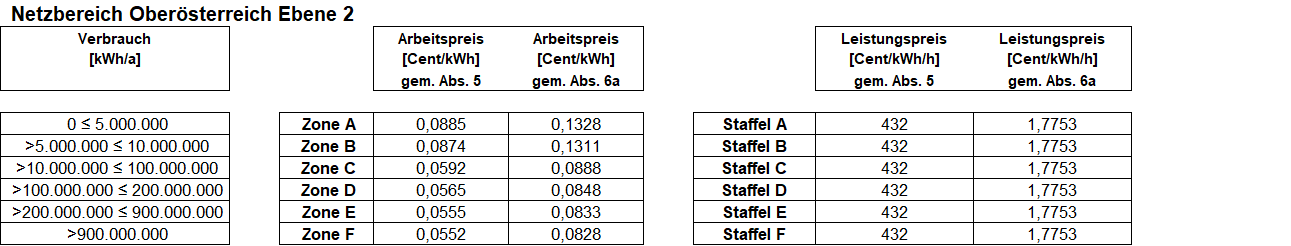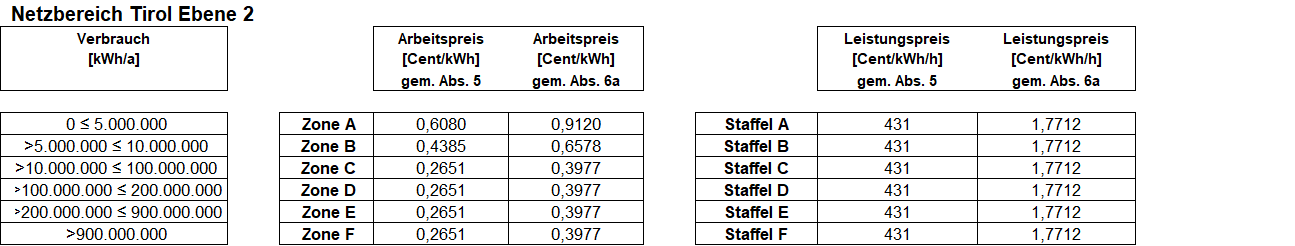 1. 1. Netznutzungsentgelt für die Netzebene 2: