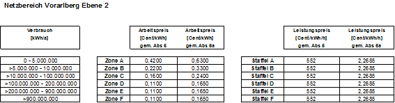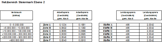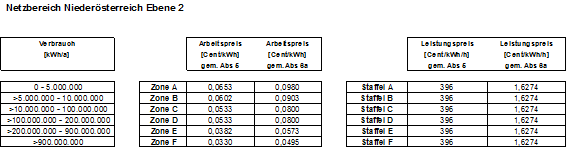 1. 1. Netznutzungsentgelt für die Netzebene 2: