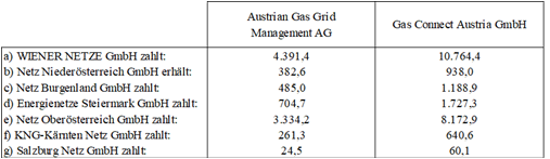 - b) Elektrizitätswerke Reutte AG zahlt an Austrian Gas Grid Management AG: 214,2.