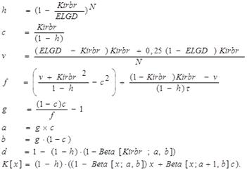 Beta [x; a, b] die kumulative Beta-Verteilung mit den Parametern a und b, ausgewertet an der Stelle x;