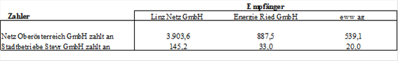 (3) Für den Netzbereich Oberösterreich werden folgende Ausgleichszahlungen festgelegt: