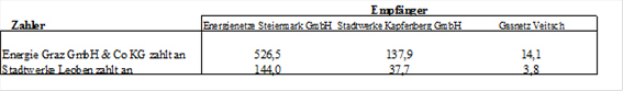 (4) Für den Netzbereich Steiermark werden folgende Ausgleichszahlungen festgelegt: