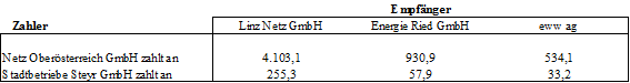 (3) Für den Netzbereich Oberösterreich werden folgende Ausgleichszahlungen festgelegt: