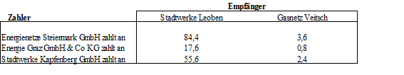(4) Für den Netzbereich Steiermark werden folgende Ausgleichszahlungen festgelegt: