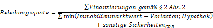 (1) Kreditinstitute haben die Beleihungsquote gemäß § 23h Abs. 2 Z 1 BWG nach folgender Formel zu berechnen: