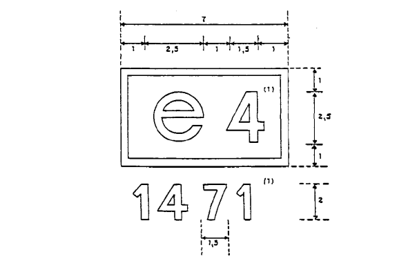 3. Die nachstehend angegebenen Abmessungen des Prüfzeichens sind in Millimetern ausgedrückt und stellen die Mindestabmessungen dar. Die Relationen zwischen diesen Abmessungen müssen eingehalten werden.