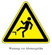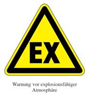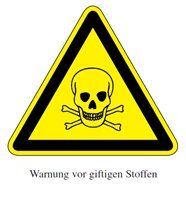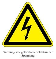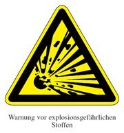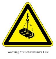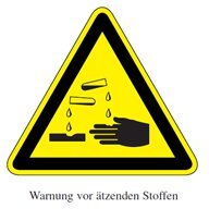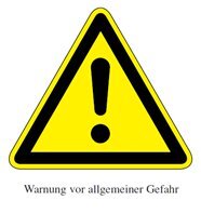 Form: dreieckig; schwarzes Piktogramm auf gelbem Grund, schwarzer Rand; die Sicherheitsfarbe Gelb muss mindestens 50% der Oberfläche des Zeichens ausmachen.