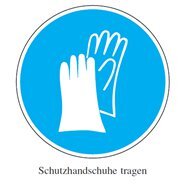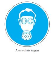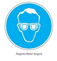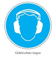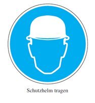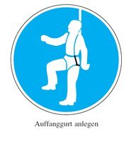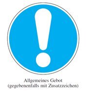 Form: rund; weißes Piktogramm auf blauem Grund; die Sicherheitsfarbe Blau muss mindestens 50% der Oberfläche des Zeichens ausmachen.