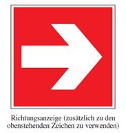 Form: rechteckig oder quadratisch; weißes Piktogramm auf rotem Grund; die Sicherheitsfarbe Rot muss mindestens 50% der Oberfläche des Zeichens ausmachen.