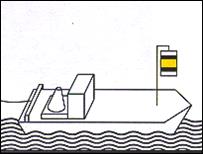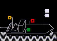 § 56, zusätzliche Bezeichnung der Fahrzeuge, die im Gewässer Arbeiten, Peilungen oder Messungen ausführen: ein gelbes helles oder gewöhnliches von allen Seiten sichtbares Funkellicht | ||
