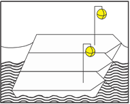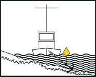 § 54 Abs. 3, Beispiel für die Bezeichnung von schwimmenden Geräten, deren Kabel, Ankerketten oder Anker die Schifffahrt gefährden können: | ||