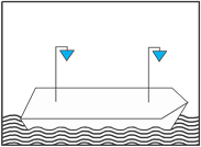 | ein blauer Kegel mit der Spitze nach unten oder ein blauer Kegel mit der Spitze nach unten jeweils auf dem Vor- und Hinterschiff |