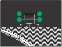 § 53 Abs. 1 Z 1 und 2 sowie Abs. 2 Z 1 und 2, Schwimmende Geräte in Betrieb und stillliegende Fahrzeuge, die Arbeiten, Peilungen oder Messungen ausführen, Durchfahrt frei an einer Seite: | ||