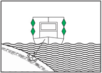 § 53 Abs. 1 Z 1 und Abs. 2 Z 1, Schwimmende Geräte in Betrieb und stillliegende Fahrzeuge, die Arbeiten, Peilungen oder Messungen ausführen, Durchfahrt frei an beiden Seiten: | ||