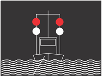 ein Topplicht, Seitenlichter, ein Hecklicht und erforderlichenfalls ein zweites Topplicht auf dem Hinterschiff |