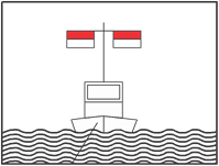 ein helles statt eines starken Topplichts, Seitenlichter, die gewöhnlich statt hell sein können, unmittelbar nebeneinander oder in einer einzigen Leuchte am oder nahe dem Bug, ein Hecklicht; oder: |