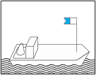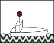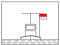 eine feste, mindestens 1 m große Abbildung der Flagge „A“ des Internationalen Signalbuches an einer geeigneten, Tag und Nacht von allen Seiten sichtbaren Stelle | ||