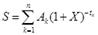 e) Mathematisch darstellen lässt sich diese Gleichung durch eine einzige Summation unter Verwendung des Faktors „Ströme“ (Ak), die entweder positiv oder negativ sind, je nachdem, ob sie für Auszahlungen oder für Rückzahlungen innerhalb der Perioden 1 bis k, ausgedrückt in Jahren, stehen: