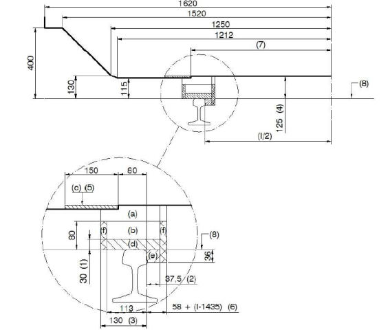 (c) Bereich für Räder und für Bauteile, die mit der Schiene in Kontakt kommen